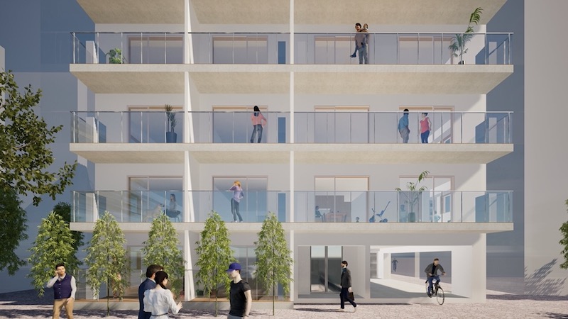 上のCGは、一般的な集合住宅において、テラス部分を、ルーバーで全面的に覆ったデザインです。
